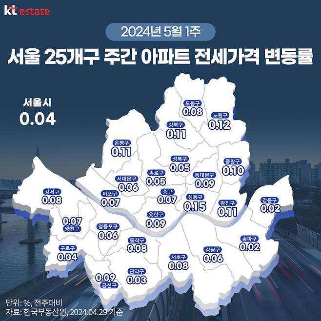 서울 아파트 전셋값이 천정부지로 오르고 있습니다. 한국부동산원에 따르면, 2024년 5월 1주(4월 29일 기준) 서울 주간 아파트 전세가격은 전주 대비 0.07% 상승하면서 지난해 5월 4주 이후 무려 50주째 상승세를 이어가고 있습니다.