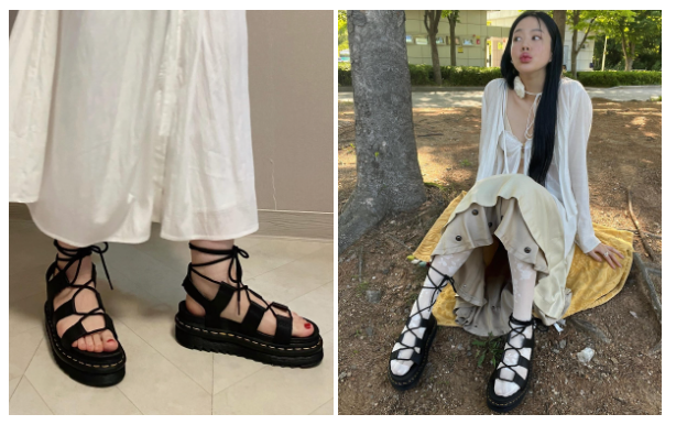 이렇게 샌들 아이템 하나로 다양한 패션템들과 매치해 심플한 룩부터 화려한 룩까지 매력적이게 완성해주는 닥터마틴 나틸라 & 나틸라 XL 샌들!