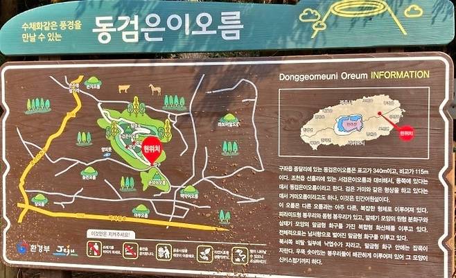동거문오름의 최대 특징은 세 개의 분화구다. 깔때기 모양의 원형 분화구 두 개와 삼태기 형태의 말굽형 분화구 하나로 구성되어 있어 오름 내부 지형 역시 독특하다.