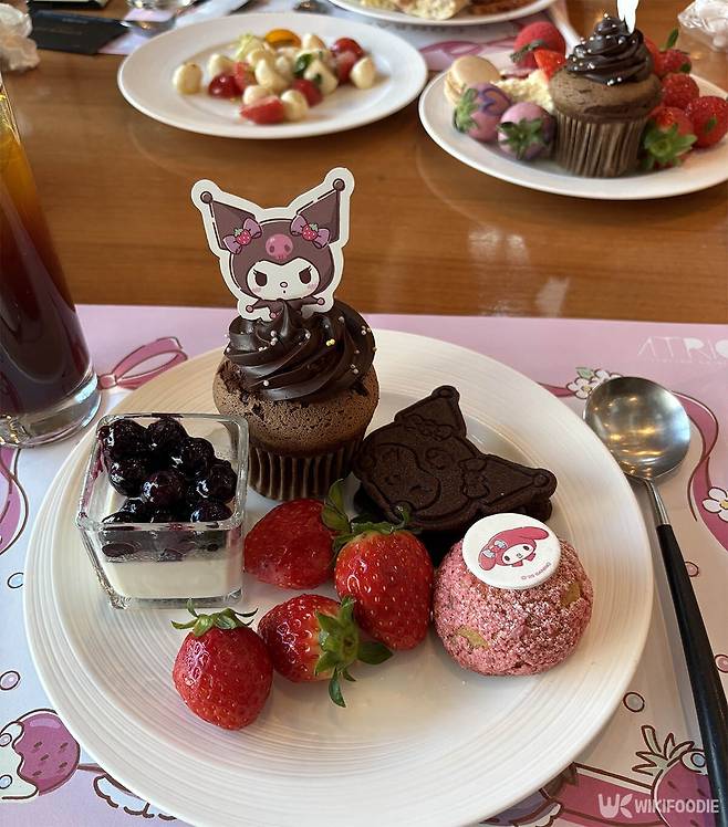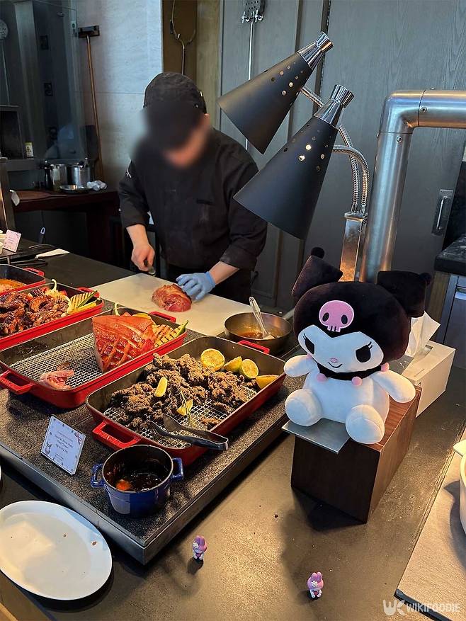 이번 행사의 가장 큰 묘미는 호텔 곳곳에 마련된 포토존이다. 입구에서부터 방문객을 반기는 대형 마이멜로디와 쿠로미 장식은 물론, 테이블 위 작은 소품 하나까지 캐릭터의 모습을 담아냈다. 손님들은 음식이 나오기도 전에 화려한 장식장과 캐릭터 벽면을 배경으로 사진 찍기에 여념이 없었다.