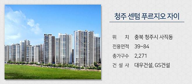 대우건설과 GS건설이 충북 청주시 사직동에 짓는 '청주 센텀 푸르지오 자이'를 분양합니다. 총 2,271가구의 대단지 아파트며 조경면적이 법적 기준의 2배를 넘어서 대규모 중앙광장과 수경시설, 순환 산책로 등으로 단지가 꾸며집니다.