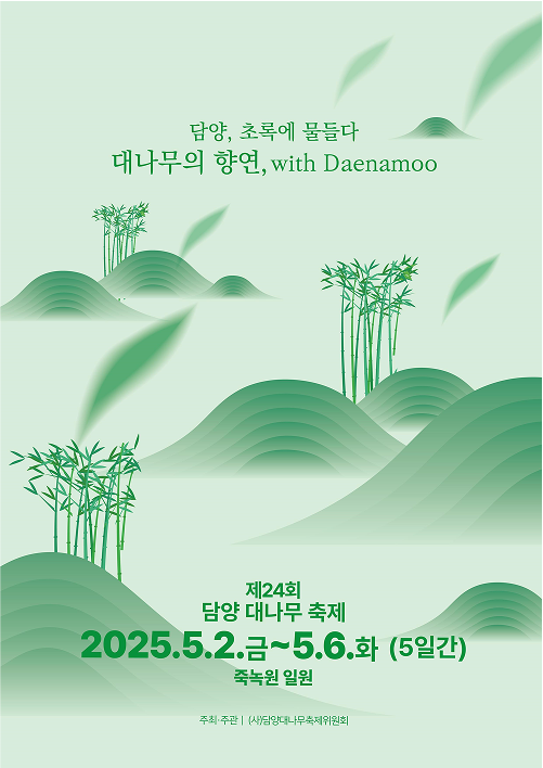 전라남도 담양군에서 봄을 맞아 제24회 담양 대나무축제가 5월 2일부터 6일까지 5일간 죽녹원·관방제림 일원에서 열린다. 올해 주제는 ‘초록에 물든 담양, 대나무의 향연’으로, 대나무 숲의 청량함과 지속 가능한 자연의 가치를 전할 예정이다.