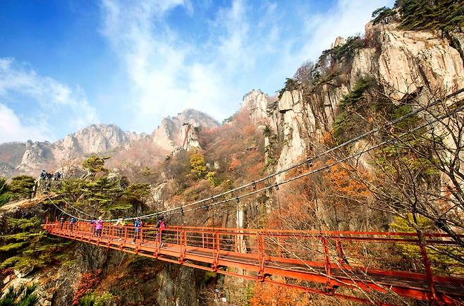 대둔산의 백미로 꼽히는 명소는 정상 부근에 위치한 구름다리다. 절벽 사이에 놓인 이 다리는 아찔한 높이와 시원하게 펼쳐지는 전망으로 방문객들의 감탄을 자아낸다.