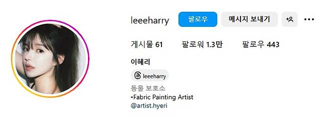 ์ฒ์ ๋ช ์จ ๋ ๋ฒ์งธ ์๊ฐํ ๋ , ์ดํ๋ฆฌ ๋์ ์ธ์คํ๊ทธ๋จ ์ฃผ์๋ ๋ฐ๋ก **@leeeharry** ์ ๋๋ค! ๐ ํ์ฌ 1.3๋ง ๋ช ์ ํ๋ก์๋ฅผ ๋ณด์ ํ๊ณ ์๊ณ , ์ค๋ ๋๋ ํ๋ฐํ๊ฒ ํ๋ํ๊ณ ์๋ค๊ณ ํ๋, ๊ทธ๋ ์ ๋ค์ฑ๋ก์ด ๋งค๋ ฅ์ ๋ ๊ฐ๊น์ด์์ ๋๊ปด๋ณด๊ณ ์ถ๋ค๋ฉด ์ง๊ธ ๋ฐ๋ก ํ๋ก์ฐํด๋ณด์ธ์! ๐คณ