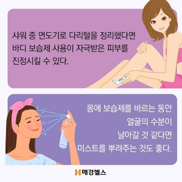 목욕이나 샤워를 하면 우리 피부에서는 놀라운 변화가 일어납니다. 뜨거운 물과 비누 성분이 피부의 자연 보호막인 ‘피지막’을 씻어내면서 피부는 일시적으로 수분을 많이 흡수한 상태가 됩니다.