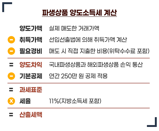 그리고 양도소득세는 아래의 자료대로 계산을 하시면 되는데, 파생상품 양도소득 계산내역은 거래하는 금융사에 요청하여 수령할 수도 있으니 이 점 잊지 마시기 바랍니다.