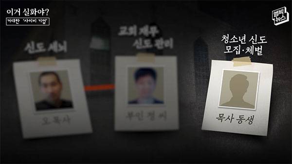 교회를 운영한 건 오 목사와 목사의 남동생 가족. 이른바 신에게 선택받은 자인 오 목사는 천국에 가려면 복종하라고 신도들을 세뇌시켰고, 부인 정 씨는 교회 재무와 신도 관리를 담당했습니다. 오 목사의 남동생은 청소년 신도 모집과 체벌을 하는 역할을 맡았습니다.