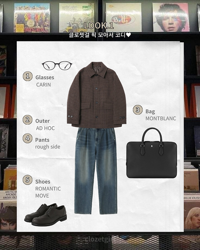 루즈한 실루엣과 안경 같은 클래식하고