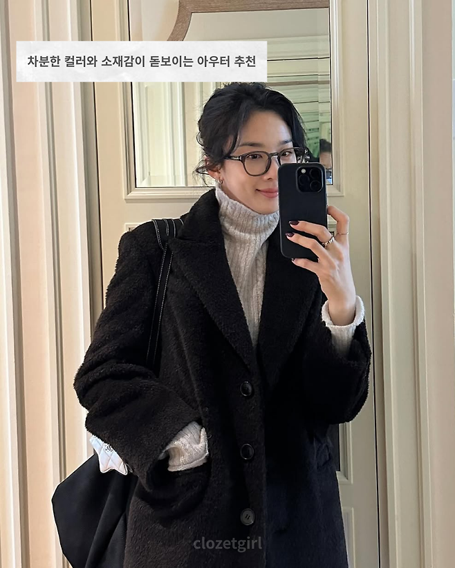 아우터는 블랙 코트로 매치해
