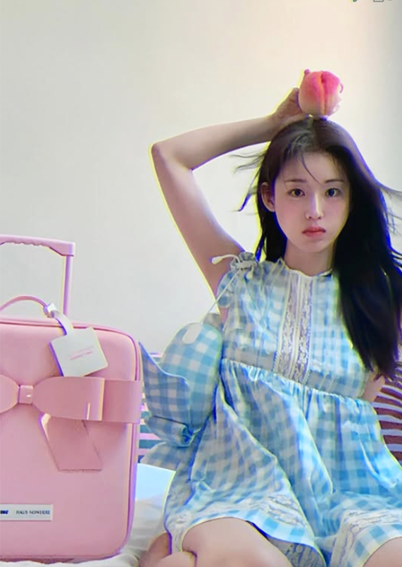 박환희는 사진 속에서 소녀 감성이 물씬 풍기는 블루 계열의 깅엄 체크 원피스를 착용했다.