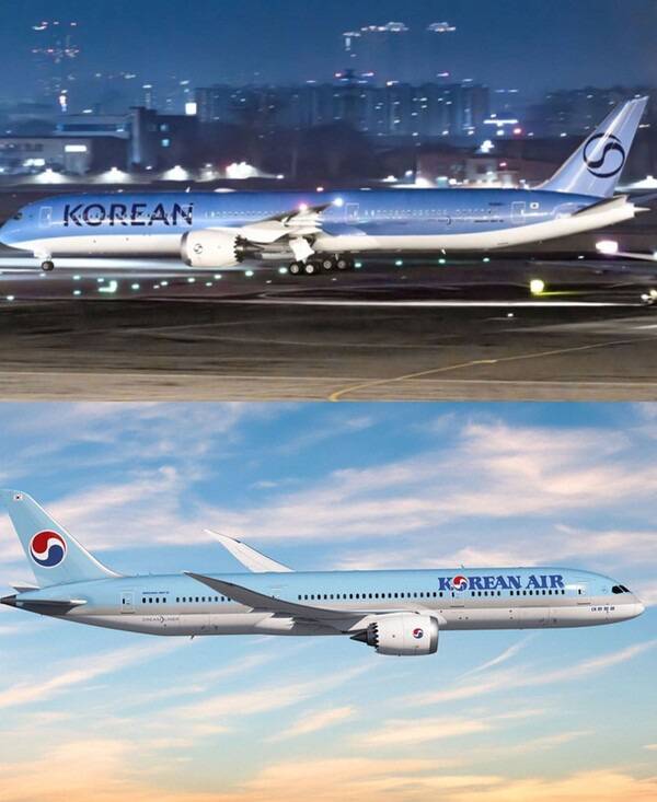 대한항공이 신규 도장과 로고를 3월 11일 공개할 예정인 가운데, 신규 비행기 도장으로 추정되는 여객기 사진이 온라인 커뮤니티에 유출됐습니다.