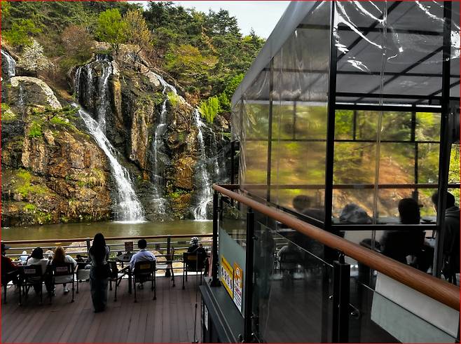 홍제폭포가 전국적인 명소로 거듭난 데에는 낙후된 공간을 정비해 탄생시킨 ‘카페폭포’의 역할이 컸습니다. 누적 방문객 375만 명을 돌파한 이곳은 2층 야외 테라스에 앉아 폭포 전체를 조망할 수 있는 ‘폭포 뷰’의 성지입니다.