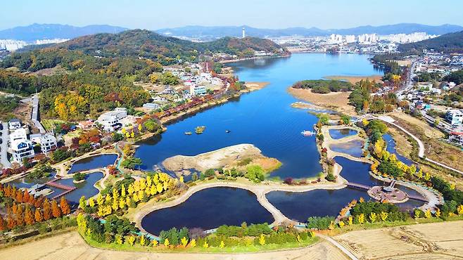 호수를 따라 이어진 5km 산책로와 계절마다 달라지는 풍경은 이곳을 단순한 공원이 아닌 ‘살아있는 이야기의 정원’으로 만들어 준다.