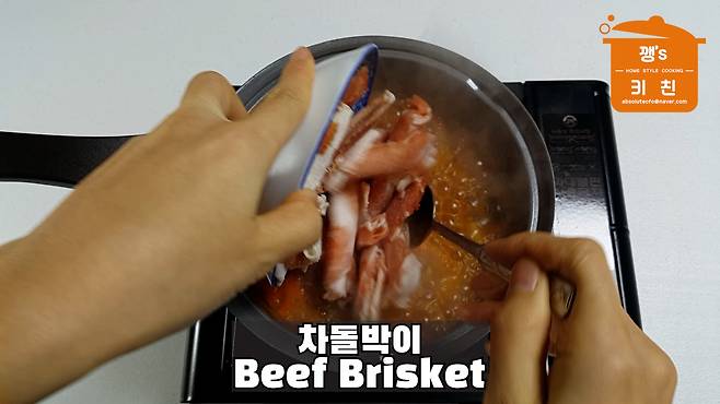 5. 팔팔 끓인 뒤 차돌박이 넣기