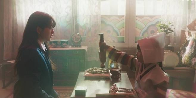 이날 방송에서는 박성아의 험난한 첫사랑의 시작이 그려졌다. 낮에는 고등학생, 밤에는 용하기로 소문난 무당 ‘천지선녀’로 이중생활 중인 박성아의 꿈은 또래 친구들처럼 그저 평범하게 사는 거다. 그러나 거꾸로 선 남자가 찾아올 거라는 예지몽이 현실로 일어나면서 평범과는 멀어져 버렸다. 박성아의 법당에 거꾸로 봐도 멋있는 ‘취향 저격 이상형’ 배견우가 들어온 것. 무당에게 거꾸로 보인다는 것은 죽음이 가까워졌다는 뜻. 박성아는 액운을 타고난 배견우가 너무나 아깝고, 안타까웠다.