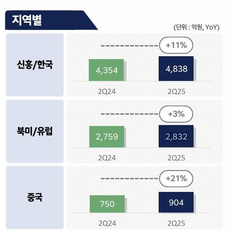 이런 가운데 2분기들어 북미 시장 침체가 완만하게 꺾였으며 유럽이 큰폭으로 반등했다. 올해 2분기 북미·유럽 매출은 전년 동기 대비 3% 증가한 2832억원을 기록했다. 유럽의 경우 영국, 이탈리아 등에서 회복세가 뚜렷하게 나타난 것으로 알려졌다.