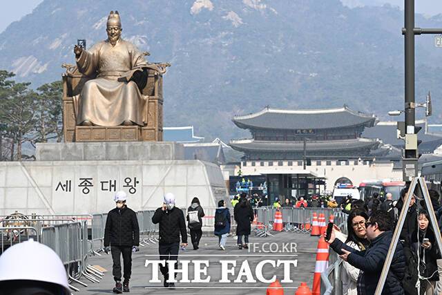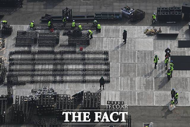 BTS 컴백 공연 D-5, 광화문앞 설치중인 무대 [TF사진관]
