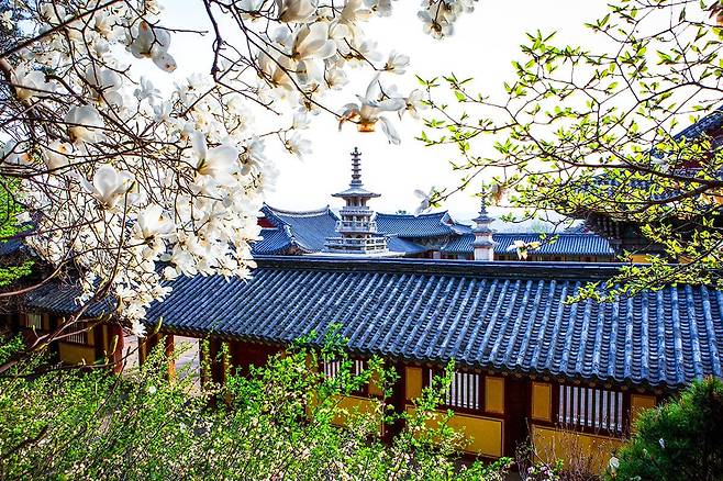 봄날 불국사는 더없이 아름답다. 사찰을 감싸는 벚꽃이 만개하는 시기라면, 기와지붕과 어우러진 꽃길이 마음을 사로잡는다. 이른 아침, 햇살이 천천히 경내를 비추는 순간은 고요하고 평화로운 봄날의 정취를 그대로 담아낸다.