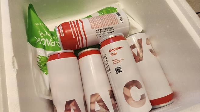 2차 리뷰에 사용된 것은 모두 5캔입니다. 한 캔에 300g이니까 모두 1.5Kg, 근 수로는 2근 반에 해당합니다. 얼음를 잘 채워서 택배로 왔습니다.