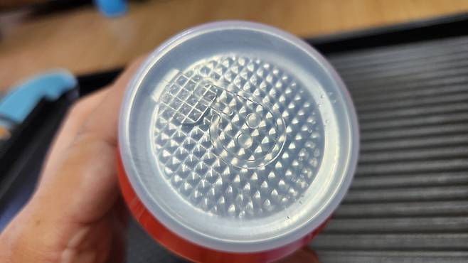 이렇게 이중으로 포장되어 있습니다. 바깥에는 감자칩에서 봤던 플라스틱 뚜껑이 있고 안쪽에 원터치 알루미늄 뚜껑이 한 번 더 있습니다.