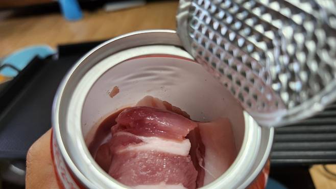 2번캔도 개봉했습니다. 역시 고기상태는 비슷합니다. 아직 고기는 7-80% 정도 구워진 상태입니다.