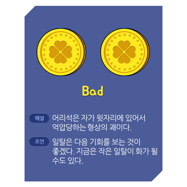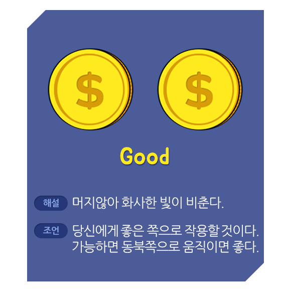 신중하게 생각 후 동전을 선택하시고 같은 사안에 대해서는 한번만 점쳐 보시기 바랍니다.