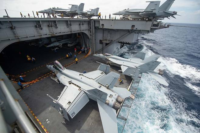 미 항모전단은 먼 거리에서 적을