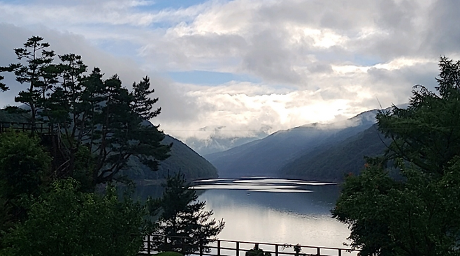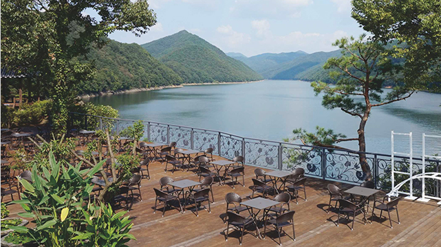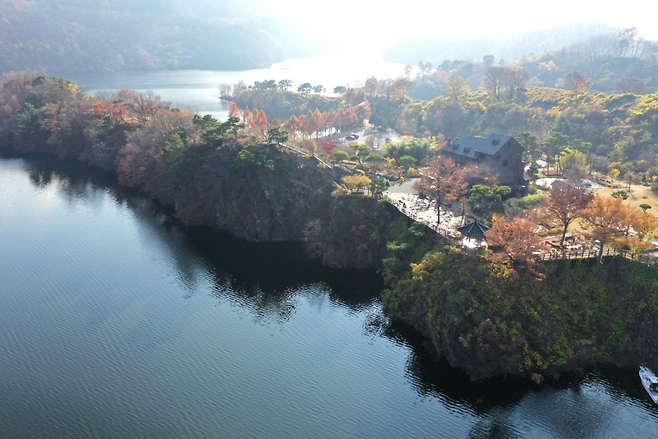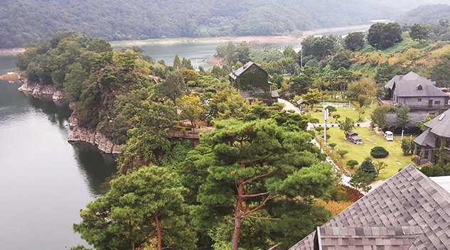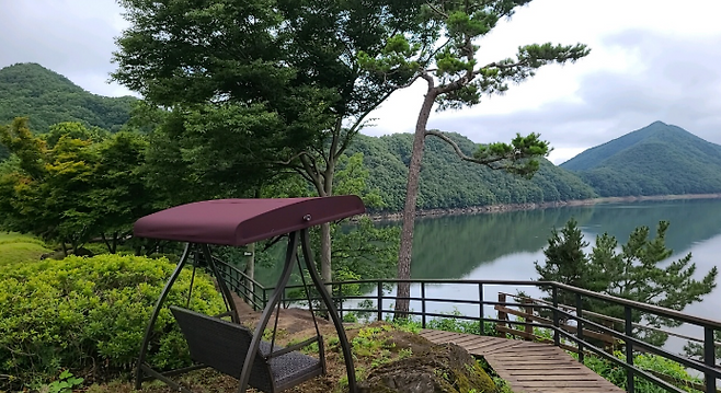 좁은 시골길을 따라가다 보면호숫가 야산 중턱에 잔잔하고 평온한 물정원이 펼쳐집니다.