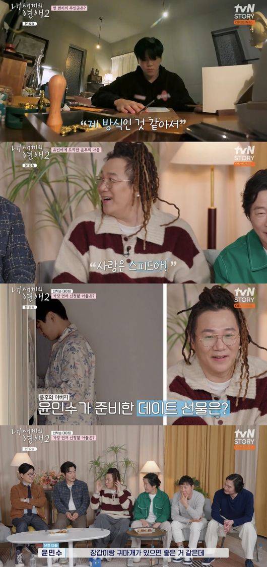 윤민수는 “저는 저런식으로 안했다”라며 “저곳이 춥지 않냐. 장갑이랑 귀마개 있으면 좋을 것 같더라. 체온적으로 마음의 따뜻함을 전해줘라 그런 느낌으로”라고 설명했다. 이에 최재원은 “세 분의 아버님 중에서 제일 호감가는 선물”이라고 설명했다.