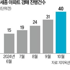 이주현 지지옥션 선임연구원은 “세종 아파트는 새 아파트인 데다 주거 선호도가 높아 그동안 일반 매매 시장에서 대부분 소화됐다”면서도 “전국적으로 매수세가 위축돼 세종 아파트조차 이자를 갚지 못한 임의경매 물건이 쏟아지고 있다”고 말했다.