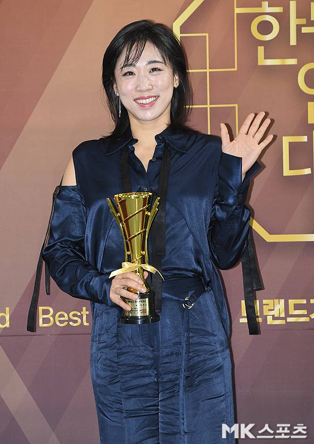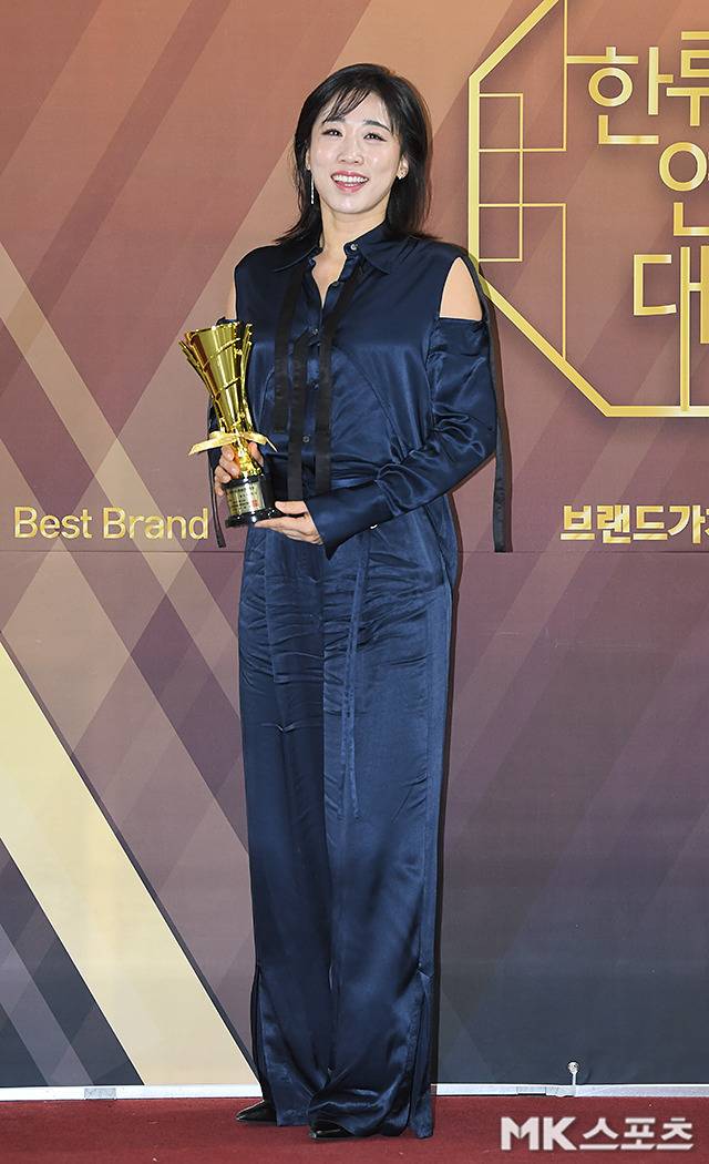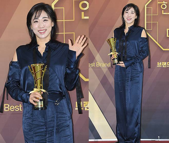 이미도는 네이비 실크 점프슈트를 착용해 우아하고 세련된 자태를 뽐냈습니다.