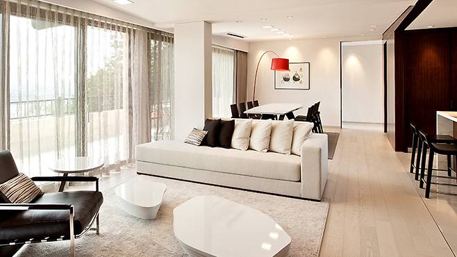 특히 에메랄드 빌라는 1505㎡(455평)에 달하는 면적을 자랑하며 복층에 통창 구조로 설계되었다. 빌라 앞으로는 한강이 보이고, 뒤로는 숲을 끼고 있어 사생활 보호를 원하는 VIP 고객들에게 안성맞춤인 주거 공간이다.