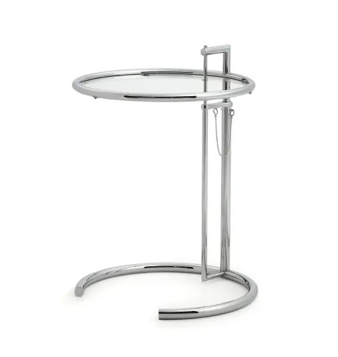 아일린 그레이의 역작인 빌라와 같은 이름의 클래시콘 ‘E-1027’ 테이블. 크롬 관과 유리를 활용한 지극히 현대적인 디자인이 돋보인다. 고리에 연결된 핀을 이용해 높낮이 조절도 가능하다.