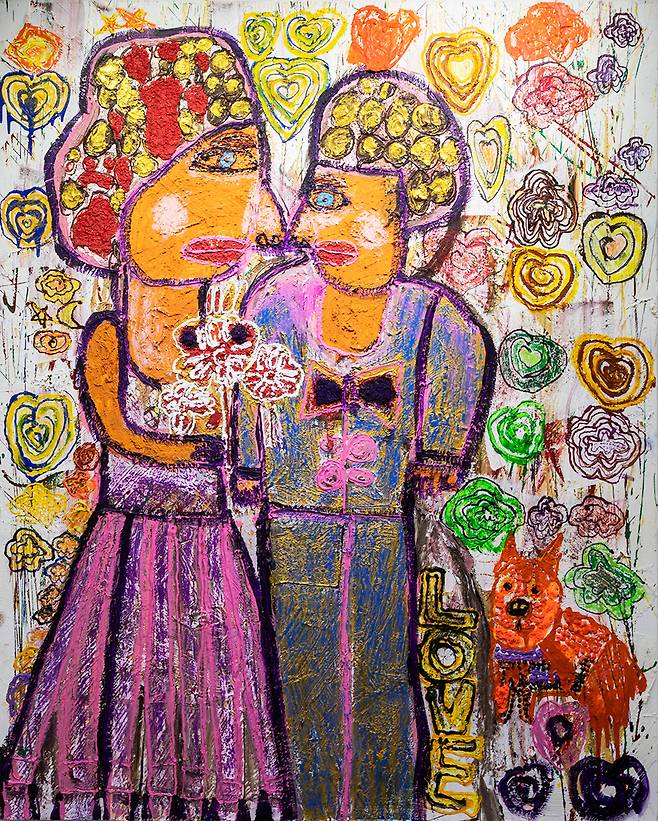 광주의 작은 교회공동체를 10살 때부터 다니면서 세상을 향한 ‘사랑의 메시지’를 전해온 작가는 <Jesus my love> 시리즈를 통해 ‘종교’를 ‘삶’으로 확장하는 방식을 채택한다. 작품의 특징은 초기 화선지 작업에서 벗어나 디테일을 위한 ‘튜브 드로잉(Tube Drawing)’으로 자신만의 마티에르를 확립한 것이다. 스미는 종이작업들이 내면의 자기 세계로 들어가는 과정이라면, 선의 마티에르를 올리는 양각 작업은 외부로 확장하는 자신감 넘치는 ‘작가의 경험’을 반영한다. 과감한 직선과 원형의 도트 작업들이 다양한 인물 군상을 보조하는데, 자기 패턴의 발견은 ‘쿠사마 야요이(Yayoi Kusama)’ 같은 대가들이 획득한 작가의 개성화 형식으로도 해석할 수 있다.