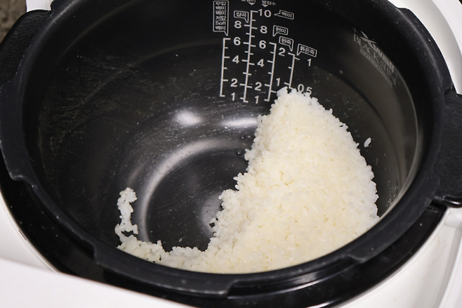 저녁 밥을 먹고 밥이 이정도 남았어요. 이 날은 밥을 많이 안먹고 라면을 먹어서 밥이 좀 넉넉하게 남았네요.