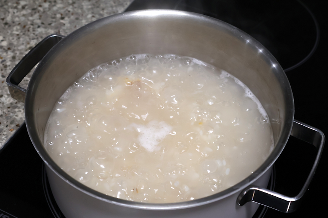 물을 넉넉하게 부어줍니다. 그리고 강불에서 팔팔 끓여요.