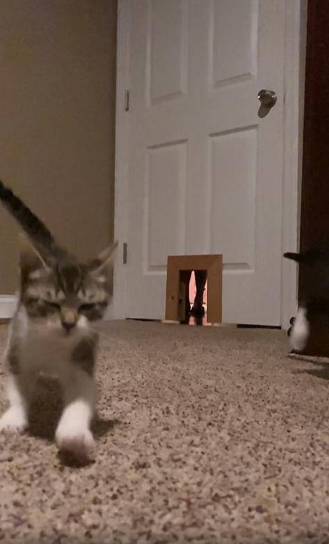이 풍경을 본 레딧의 한 이용자는 말합니다. “저건 고양이판 신데렐라 탈출극이야. 누가 제일 먼저 나왔는지가 중요하지, 신발은 없어도 돼.”