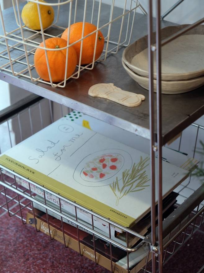 재료마다 다르긴 한데, 가까운 마트를 가장 많이 이용해요. 과일은 시부모님이 운영하는 사과와 딸기 농장에서 가져오죠. 채소만 다루다 보니 대용량으로 구입∙보관할 수 있는 식자재가 별로 없더라고요. 푸드 마일리지도 줄일 겸 가장 가까운 데서 소량으로 자주 구입하는 편이에요.