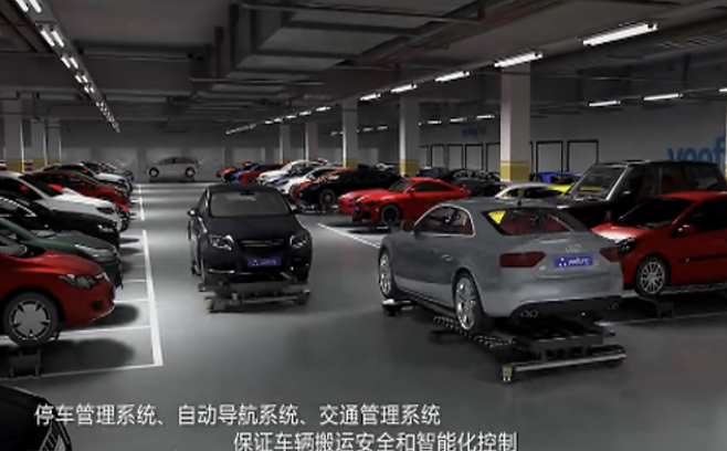 차량 번호판을 인식하면 자동으로 입구가 열리는데, 이때 운전자는 차에서 내려 버튼 하나만 누르면 주차 끝입니다. 기계를 통해 지하로 내려간 차는 360도 방향으로 이동이 가능한 자율주행로봇에 의해 자동으로 주차 자리까지 옮겨지게 돼요.