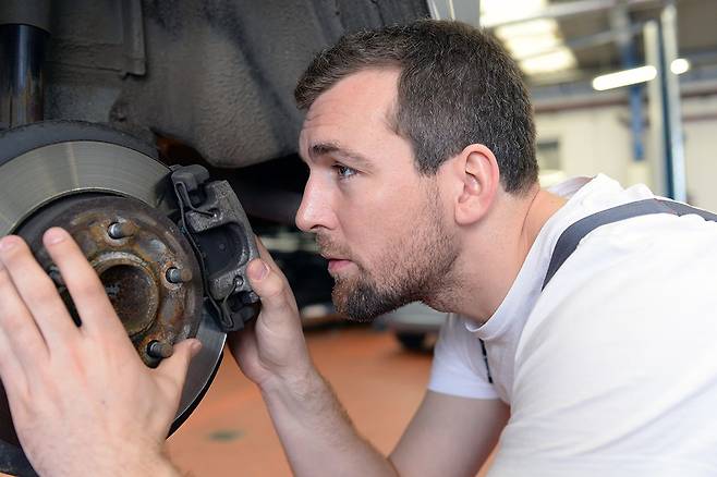 가장 심각한 경우는 ‘쇳소리’다. 금속끼리 긁히는 듯한 소리가 난다면 브레이크패드가 이미 닳아 디스크를 금속으로 마모시키는 위험 단계에 진입한 것.