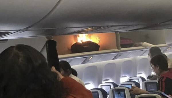 2018년 괌 상공을 운항중이던 대한항공 비행기에서 승객이 떨어뜨린 스마트폰이 압착되며 기내에서 연기가 발생해 소화기를 분사하는 등 자칫 위험한 사고가 발생할 뻔 했습니다.