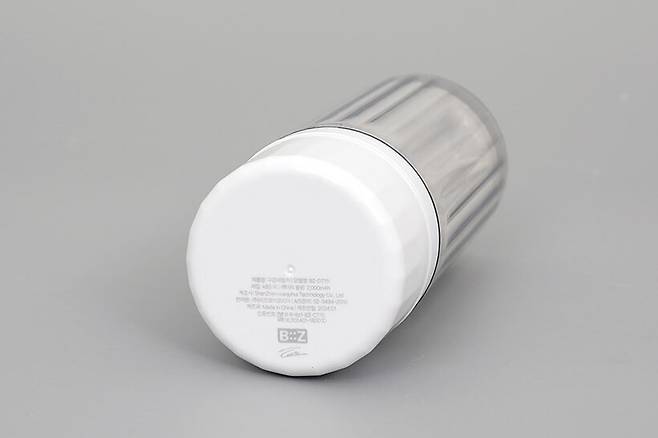 충전이 완료되면 본체 아랫부분을 돌려서 하단 커버를 제거한다. 커버 안쪽에는 반투명의 실리콘 튜브가 장착되어 있다.