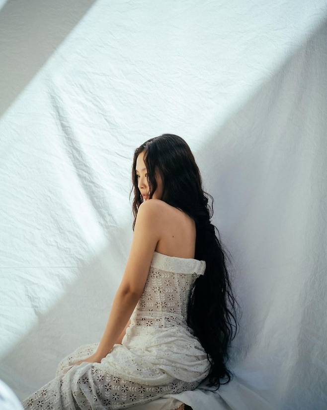 또 다른 사진에서 제니는 화이트 펀칭 튜브탑 원피스를 착용해 청순하고 화사한 미모를 뽐내기도 했습니다.