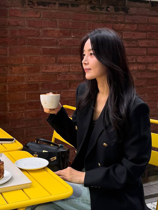 도심의 카페 테라스에서 커피를 들고 있는 순간조차, 한지혜의 분위기는 여전히 영화 속 장면처럼 고요하게 흘렀죠.