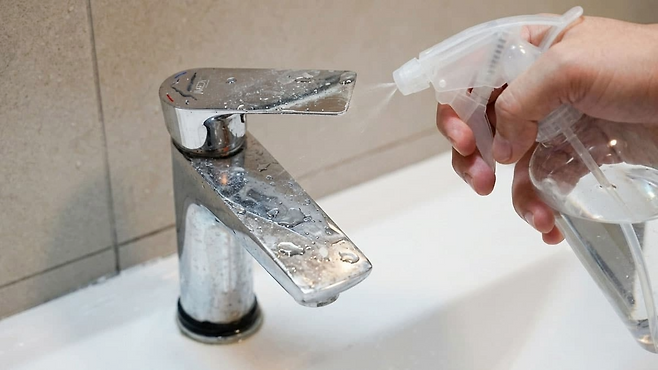 욕실 수도꼭지와 샤워기에 생기는 하얀 얼룩인 백화현상은 단순한 물때가 아닌 물속 미네랄이 굳어진 석회질이다.