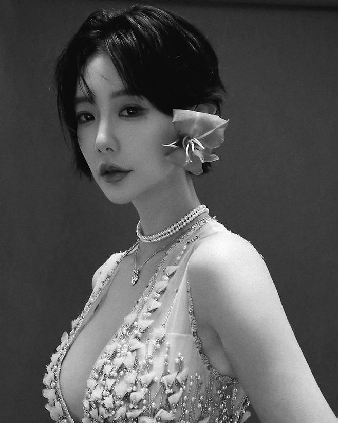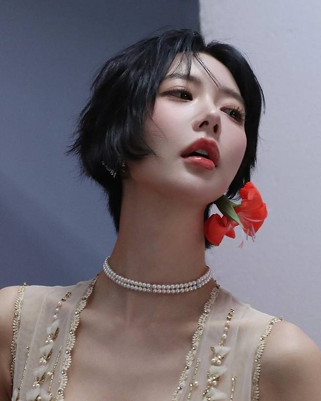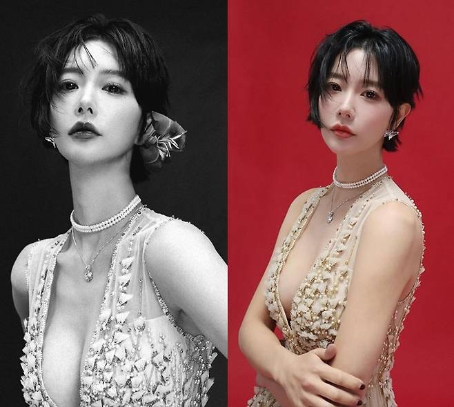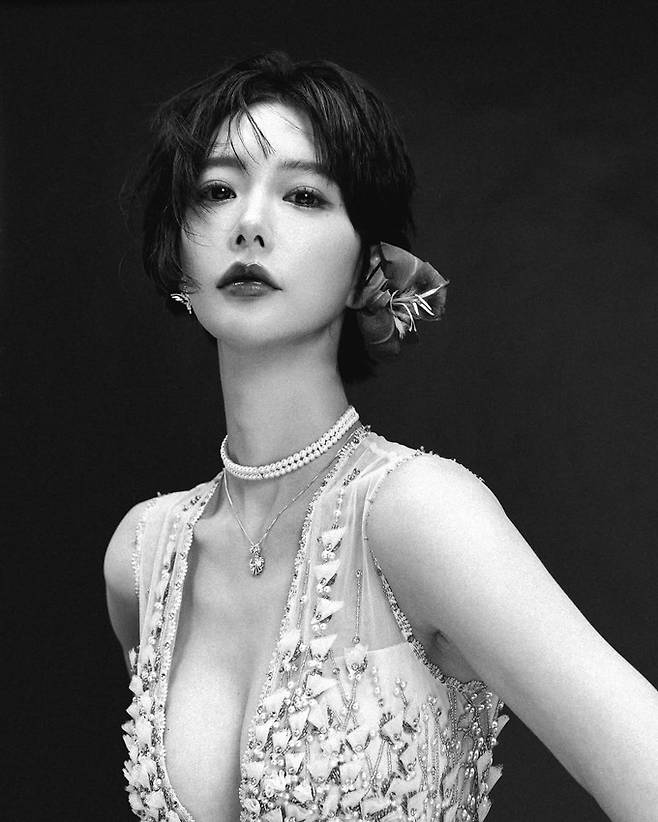 공개한 사진에서 클라라는 숏컷 헤어 스타일에 가슴이 깊게 파인 파격적인 베이지 클리비지 시스루 드레스룩으로 매혹적인 인형미를 드러냈다.