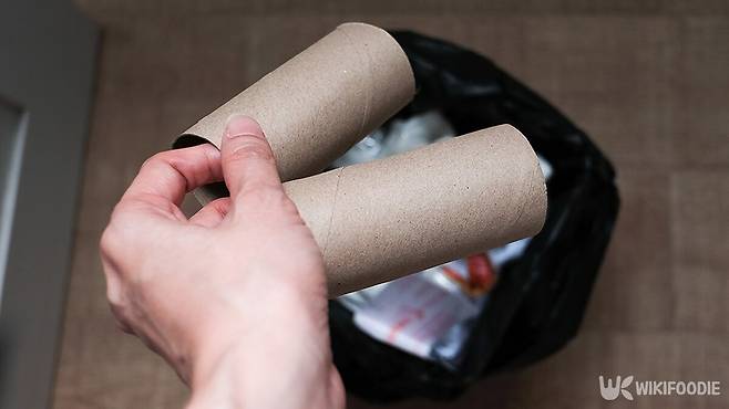 1. 다 쓴 휴지심을 준비한다. 끝부분을 손으로 눌러 납작하게 만든다. 좁은 창틀 틈에 잘 들어가도록 평평하게 접어준다.