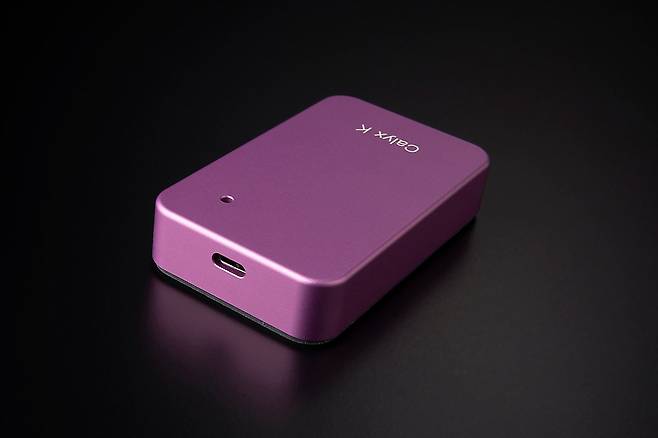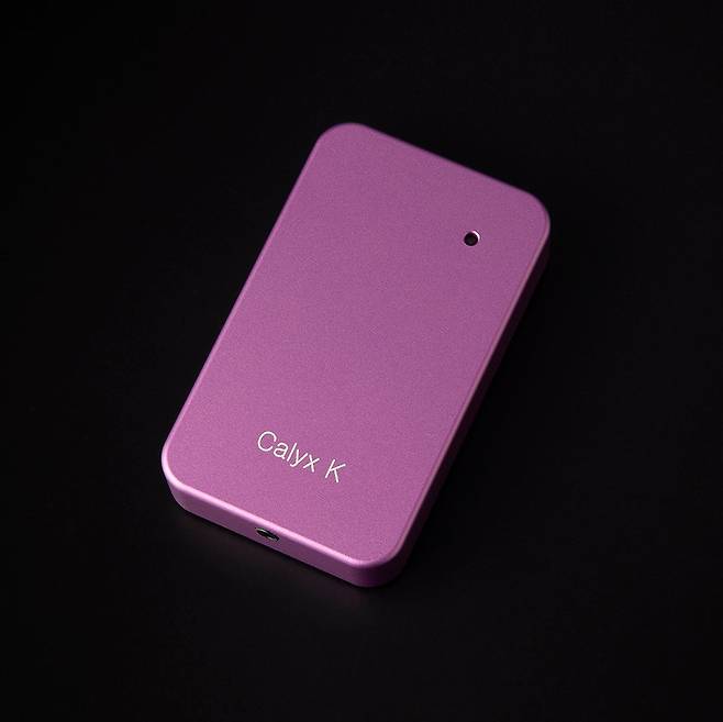 새로 발매하는 신제품인 캘릭스 K는 이러한 포터블 라인에 속하는 휴대용 DAC로 스마트폰이나 태블릿 또는 노트북이나 컴퓨터 등에서 연결해서 사용하는 USB DAC이자 헤드폰 앰프이다. 네이밍으로 보면 이전에 발매된 캘릭스 콩을 대체하는 모델로 보이는데, 실제로 크기나 디자인이 예전 캘릭스 콩과 매우 흡사하다. 바뀐 점이라면 볼륨에 해당하는 버튼이 있었던 것과 달리 아무런 버튼 없이 LED 불빛 하나만 있는 심플한 디자인을 보여준다. PC나 스마트폰 연결을 위해 USB C 단자를 갖췄고, 반대쪽에는 헤드폰 연결을 위한 3.5mm 잭 출력만이 있다.