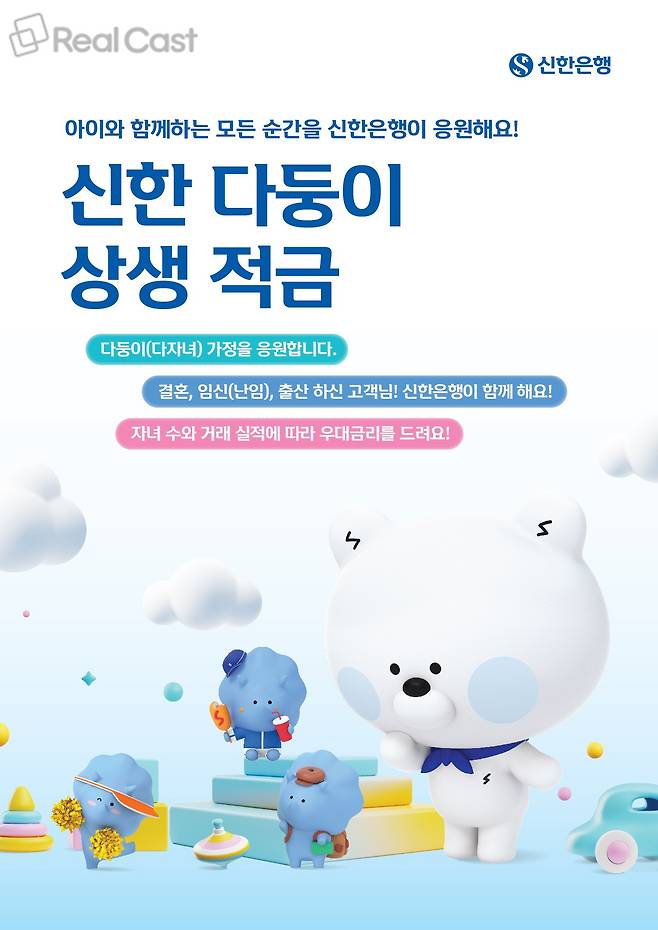 신한은행(은행장 정상혁)은 저출산 극복을 위한 상생금융 상품인 ‘다둥이 상생적금’을 지난 3월 출시하고 판매 중입니다. 이 상품은 가입기간 중 결혼, 임신(난임), 출산을 한 고객 및 다자녀(2자녀 이상) 고객 등 저출생 극복에 이바지한 고객들에게 우대금리를 제공하는 상품입니다.