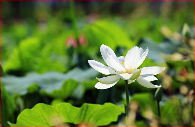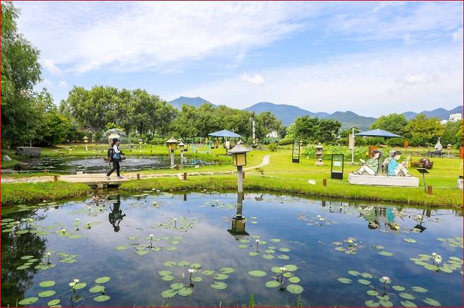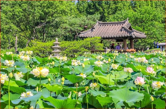 "연꽃 피는 물 위의 정원에서 마음을 비우다"